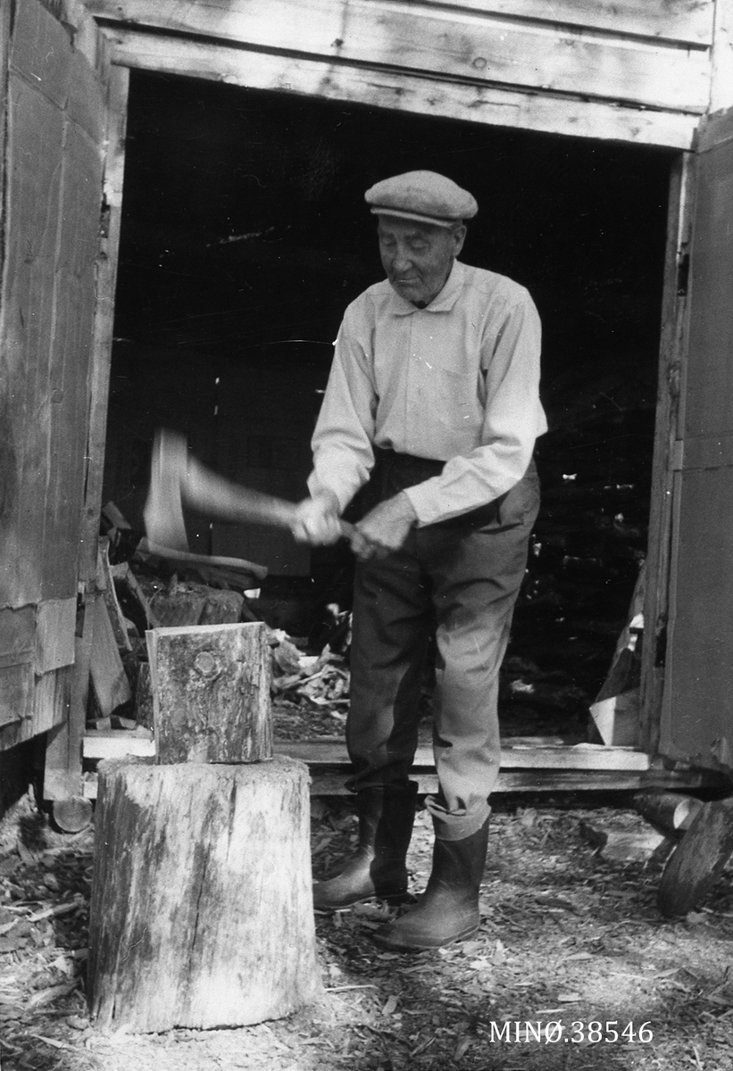 Adam Alsing Hugger Ved , File:isak Persen Buljo Hugger Småved, I Bakgrunnen Står Et Stativ Med En Gryte. Øksfjordeidet ...