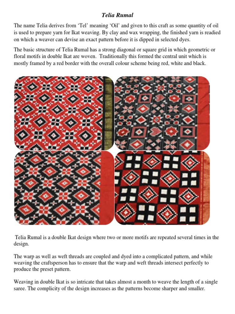 2Weave of Telia Rumal Double Ikat Sari by Gajam Anjaiah 16 Auspicious Symbol design based on .... Having originated in chirala, the skills later spread to nalgonda district. A distinctive addition to anybody's wardrobe with its striking red borders, and geometric patterns. Telia rumal literally means ' oily handkerchief'. The telia rumal is a double ikat weave. The name telia derives from 'tel' meaning 'oil'and is given to this craft as large quantity of oil is used to prepare the yarn for ikat weaving. Telia rumal has been the mainstay of ikat in andhra. Weaving a telia rumal needs a great amount of practice and perfection for the warp and weft to be meticulously converted to an artistic design. Today, the telia rumal has finally found a new and befitting avatar in the form of sarees ad dupattas. Jharkhand's sohrai khovar painting and telangana's telia rumal were given the geographical indication (gi) tag on tuesday by. The properties of tel and the lineage of rumal make the telia rumal distinct from, and superior to, the nalgonda ikat or pochampally ikat saris. 'telia' means oil, and 'rumal' means handkerchief. Telia rumal can only be created with traditional handloom process. Gal jau laikas keisti internetą? Apsilankyktie ir sužinokite savo interneto greitį. „telia interneto greičio matuoklė gali nustatyti jūsų tinklo spartą.